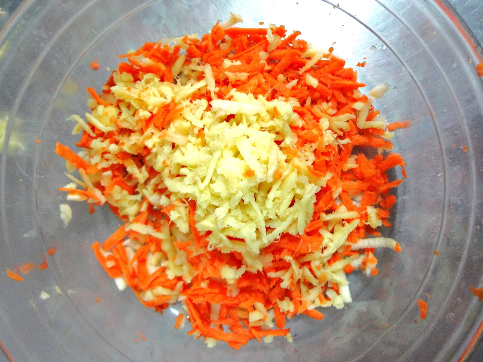 2. Rallamos la zanahoria, la manzana y el jengibre fresco y apartamos