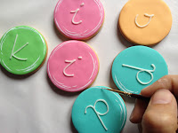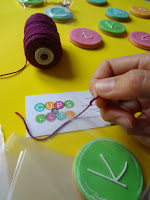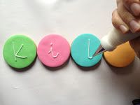 Una vez listas llegaba uno de mis momento preferidos: LA DECORACIÓN… Cuando me dícuenta sólo le había sacado fotos al paso que ahora verán, el de escribir las letras de «kids» con manga pastelera y glasa real, pero pensándolo un poco, tampoco me extraña porque las letras mayúsculas de «CUPS» tuve que elaborarlas sin cortadores (porque claro, no hay un cortador para cada tipografía). Entonces ¿con qué? pues con bisturí, a pulso, salvo la «C», uff, menos mal que al menos una podía hacerla con dos cortadores circulares de distinto tamaño…Tengo cortadores del abecedario, pero las letras eran más pequeñas y no se parecían nada a las del logo…lo que yo digo, Macgyver es en lo que nos convertimos.