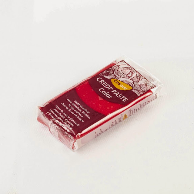 Luego el vestido lo cubrí con Credipaste rojo. Tengo que decir que, para gustos colores y tipos y marcas de Fondant, pero éste lo RECOMIENDO para tartas 2D o redondas o cuadradas pero que no sean muy altas, porque CUBRE MUY BIEN, y casi no se aprecian imperfecciones.